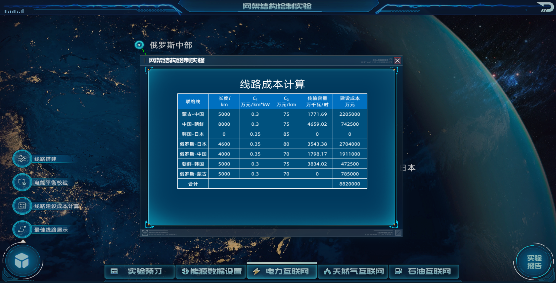 (2)东北亚能源互联网网络架构搭建:通过东北亚能源互联网网络架构搭建仿真实验,使学生了解东北亚各国的资源禀赋,了解各国不同能源的产需结构,掌握合理规划能源传输网络的原理与方法,明确东北亚能源互联网的结构特征,形成一定的全球能源配置观念,通过启发式、探究式等多种教学方法,由学生自主设置网络拓扑与容量,增强学生对于跨国能源互联的理解(图5)。
