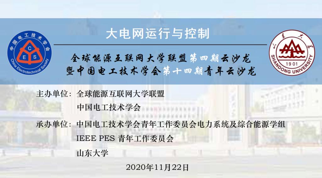 2020年11月22日晚19:00-22:00,全球能源互联网大学联盟第四期云沙龙暨中国电工技术学会第十四期青年云沙龙“大电网运行与控制”——资深学者讲堂成功召开。本次云沙龙由全球能源互联网大学联盟和中国电工技术学会联合主办,中国电工技术学会青年工作委员会电力系统及综合能源学组、IEEE PES青年工作委员会和山东大学联合承办。星空网页版·官方端在线何东欣副研究员担任会务组织人。通过腾讯会议线上报告与讨论、微信群互动和中国电工技术学会活动平台同步直播相结合的形式,本次活动报告丰富充实,参与气氛热烈,取得了圆满成功.
